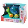 Tira del caracol y la pelota empieza a dar la vuelta. Empuje las formas a través de los agujeros correspondientes. Empuja al caracol y observa cómo la cabeza del caracol gira y se mueve. Características del producto: Marca: Playgo Toy Categoría: Juguetes de luz, sonido y música Edad: 12 - 18 meses Detalles: El niño puede aprender a caminar solo con este caracol Push N Roll Desarrolla el sentido del equilibrio y la coordinación del bebé