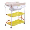 * Instalada sobre un caballete metálico que cuenta con 2 amplias charolas en la parte baja donde puedes acomodar los accesorios del bebé (Ropita, talco, cremas, etc.) todo lo que necesitas al momento de cambiarlo sin necesidad de que lo descuides ni un solo instante.