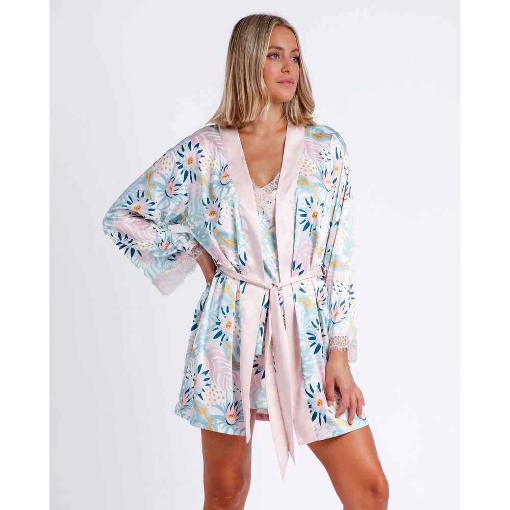 Diseño: Esta bata presenta un diseño de manga larga con un estampado floral en color blanco.