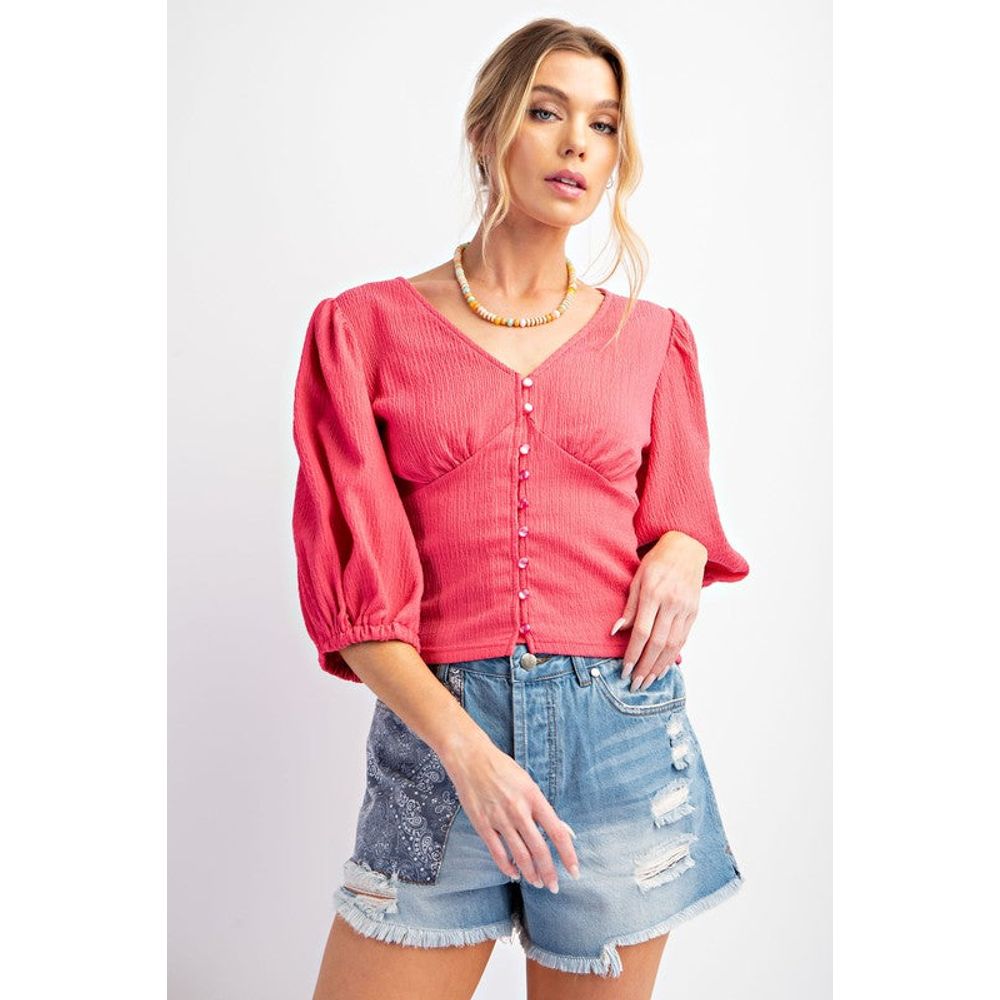 Blusa Marissa Olivia Mangas Cortas Corrugada Para Damas
