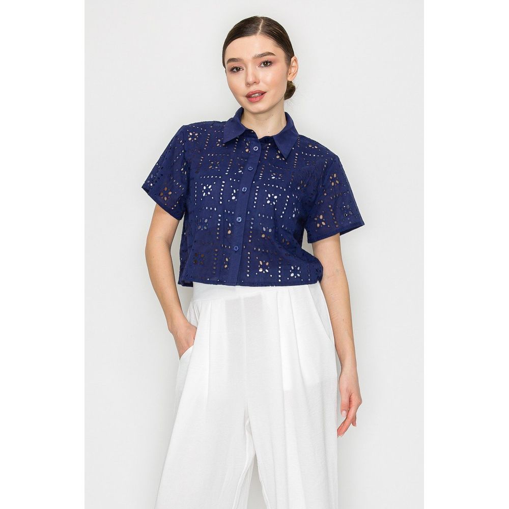 Blusa Iris Mangas Cortas Encaje Eyelet Para Damas