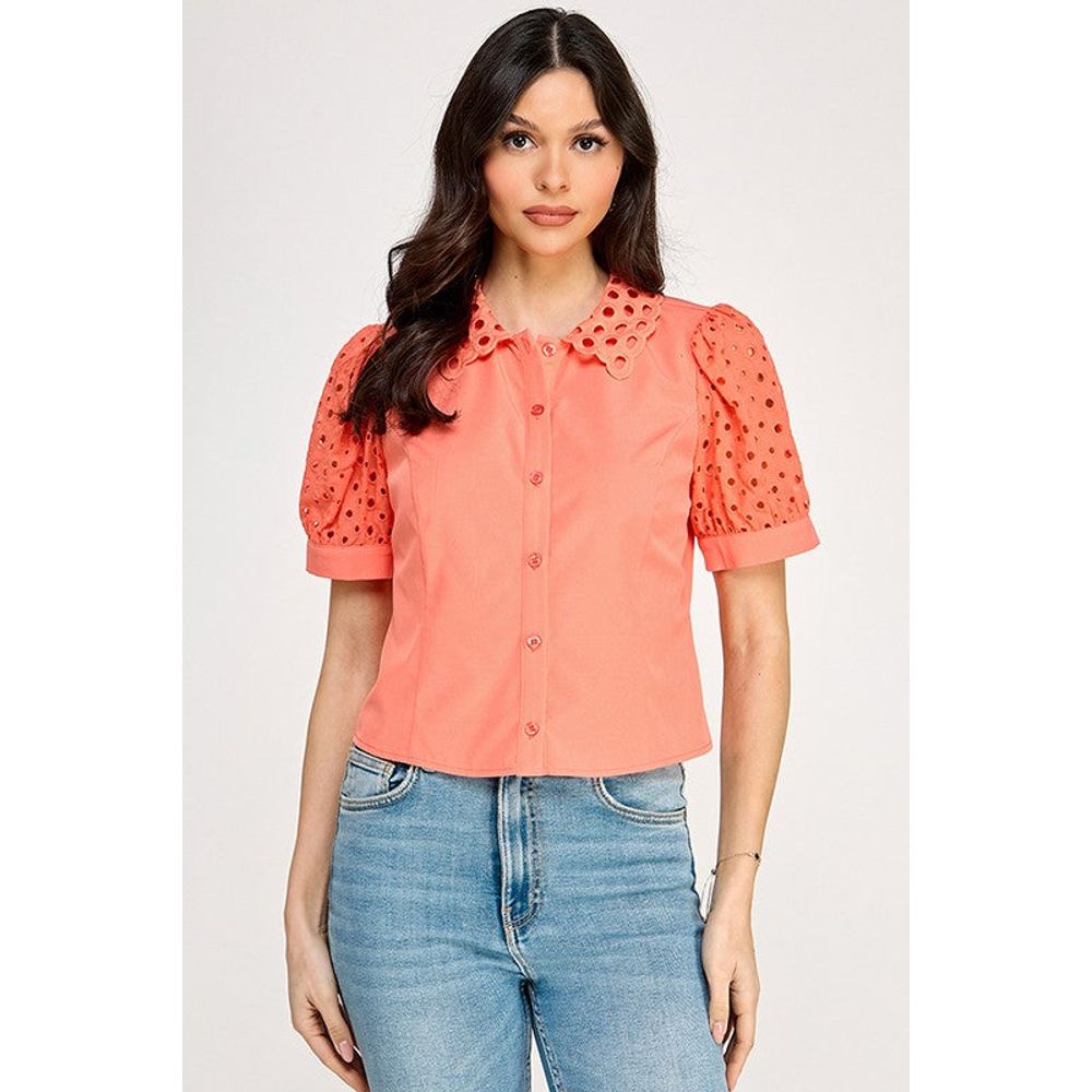 Blusa Adiva Mangas Cortas Eyelet Para Damas