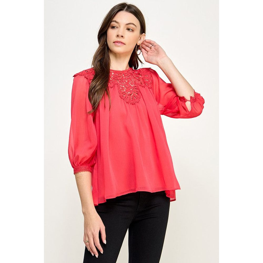 Blusa Marissa Olivia Mangas 3/4 Liso Encaje Para Damas