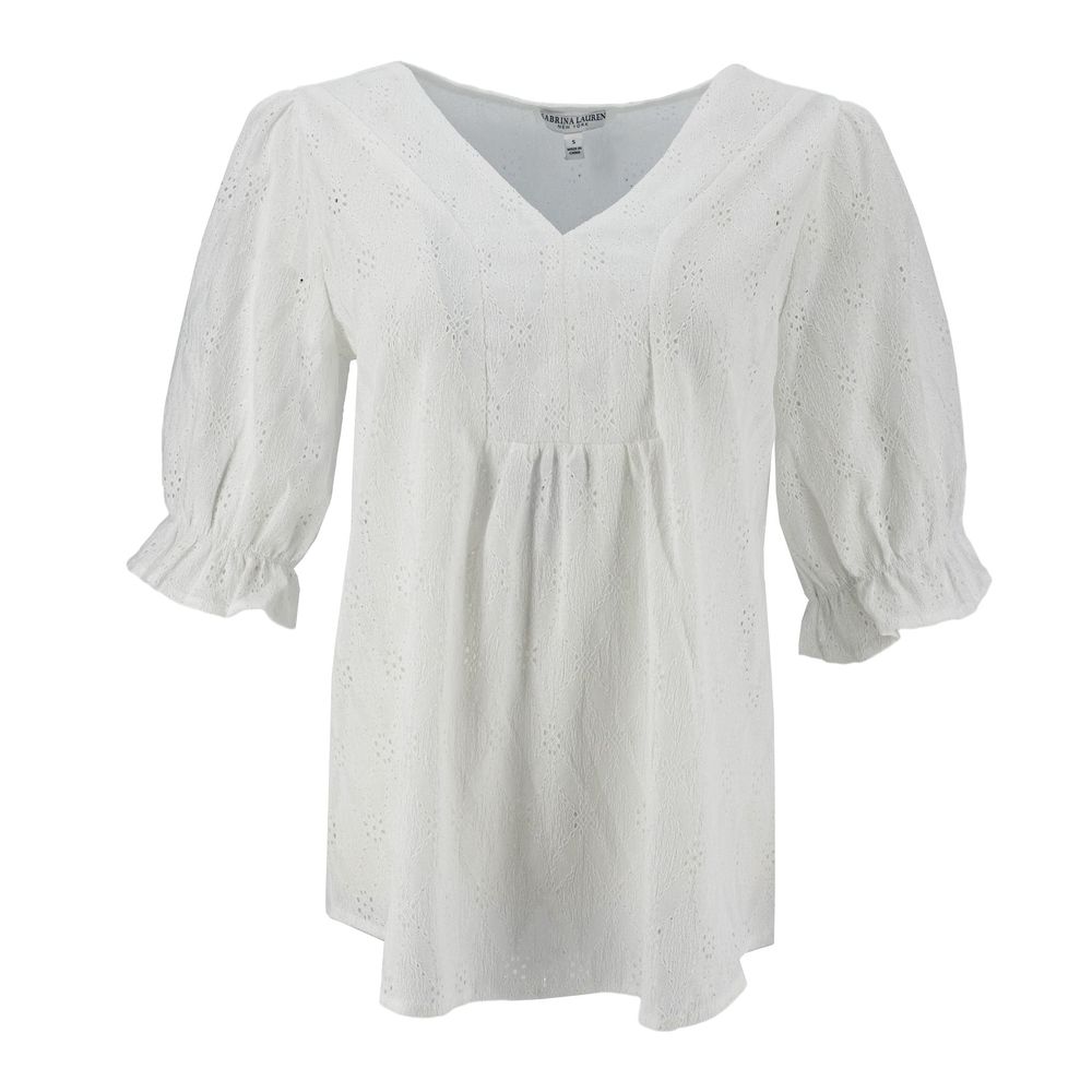 Economia de RD$1,000.09Blusa Sabrina Lauren Mangas Cortas Encaje Eyelet Para Damas 97% Polieste 3% Spandex