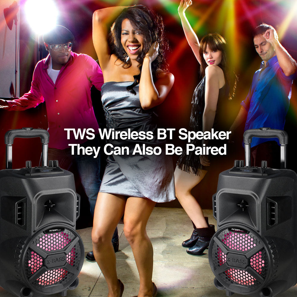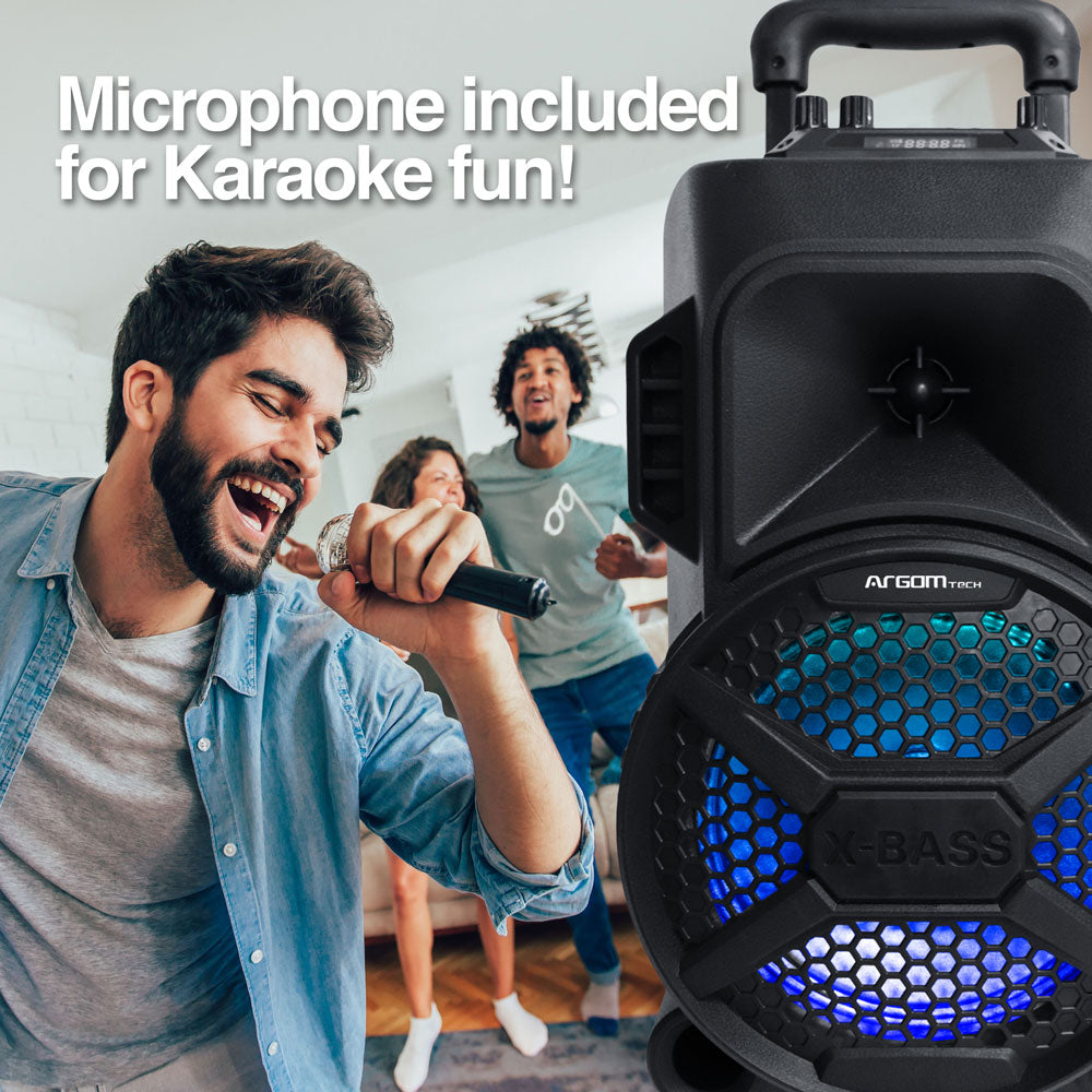 Tu fiesta todo en uno. Potencia, luces y karaoke para llevar a donde quieras.
