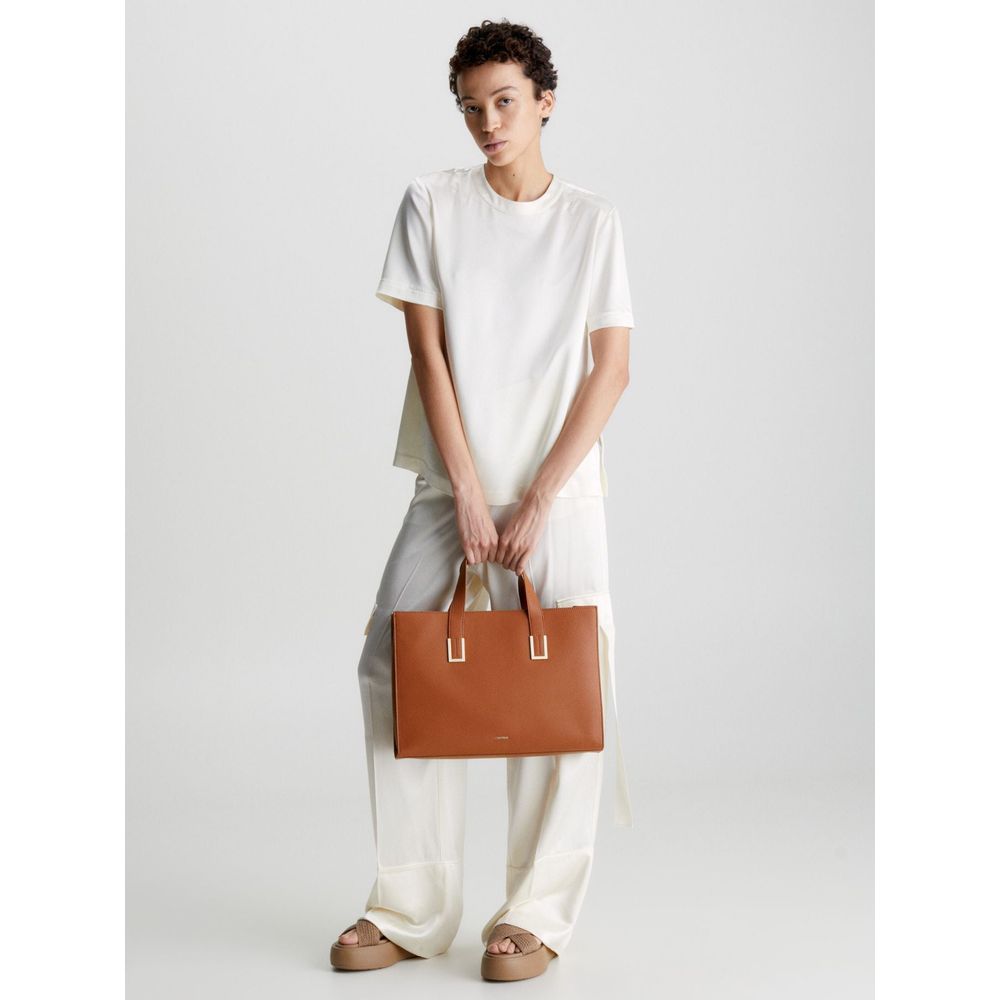 Añade un toque chic a tu look con el Bolso Calvin Klein Large Recycled Tote Bag K60K610448, parte de nuestra colección de accesorios icónicos y atemporales. Este bolso tote está confeccionado con materiales 100% sostenibles, excluyendo los adornos. El exterior de cuero sintético reciclado y a base de agua presenta una textura granulada, combinando estilo y responsabilidad ambiental. Con asas superiores y una correa cruzada opcional, este bolso es perfecto para cualquier ocasión. El interior incluye un compartimento con cremallera para laptop, lados expandibles con broches y forro con el logo de Calvin Klein en poliéster reciclado. Las dimensiones y el diseño aseguran un ajuste perfecto y comodidad en su uso diario. Fabricado en Camboya, este bolso refleja la elegancia y sostenibilidad de Calvin Klein. Compra ahora y lleva contigo la elegancia atemporal y ecológica de Calvin Klein.