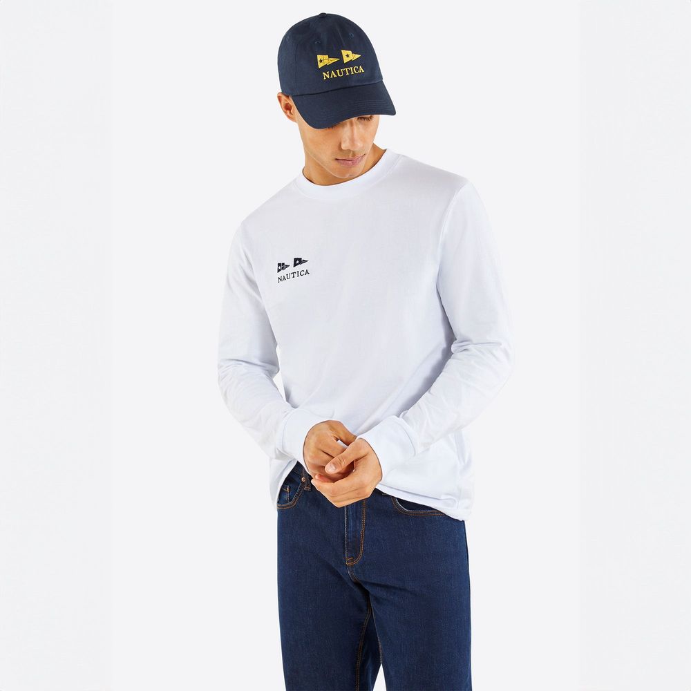 Esta camiseta Nautica de mangas largas estampada para caballeros es la prenda perfecta para quienes buscan un estilo moderno y con personalidad. Su diseño y comodidad la hacen ideal para un look relajado y distintivo.