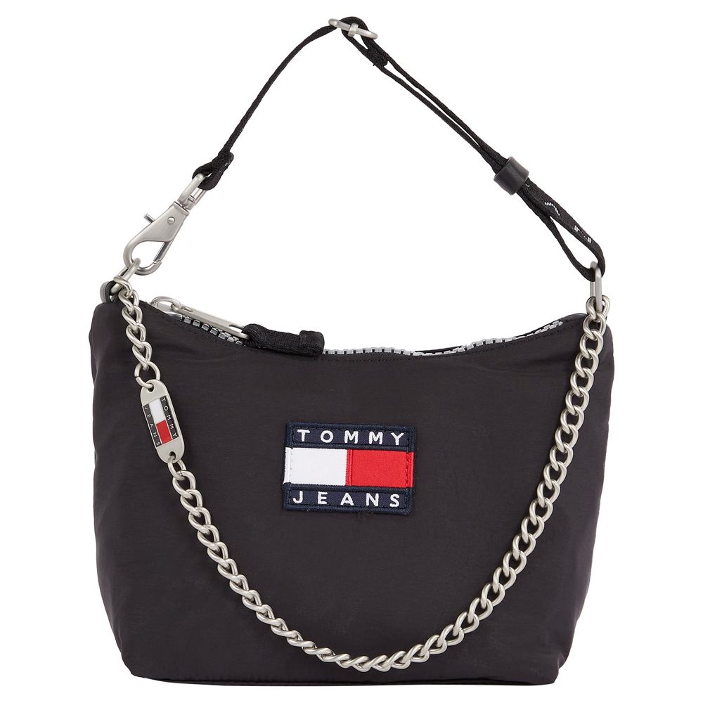 Descubre la Tommy Jeans Heritage Women's Shoulder Bag AW0AW14112-0GJ, un accesorio elegante con detalles retro y metálicos, perfecto para cualquier look. Confeccionado en 100% nylon reciclado, este bolso ofrece durabilidad y estilo. Con un cierre de cremallera y un asa de cadena superior, es ideal para llevar tus esenciales diarios con comodidad y elegancia. Añade este moderno y chic bolso a tu colección y disfruta del estilo inconfundible de Tommy Jeans.