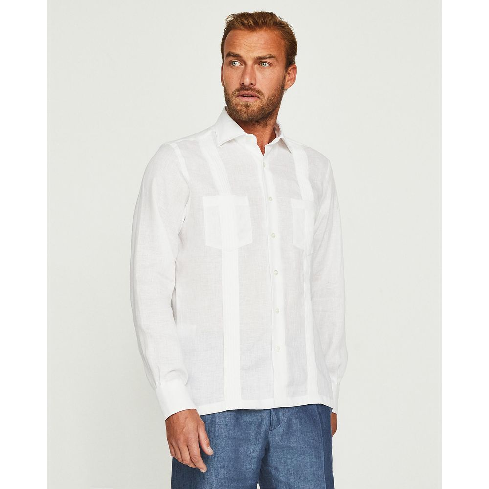 Chacabana Mirto Mangas Largas Lisa Para Caballeros Modelo 5999-50 Parte de la exclusiva Classic Line de Mirto, esta chacabana es la elección perfecta para hombres que buscan un estilo sofisticado y cómodo. Confeccionada con 100% lino, combina elegancia, frescura y funcionalidad, ideal para eventos formales o casuales elegantes.