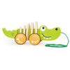 Incluso antes de que el niño pueda caminar y tirar del juguete, puede empujarlo por el suelo. Póngale un nombre al cocodrilo.