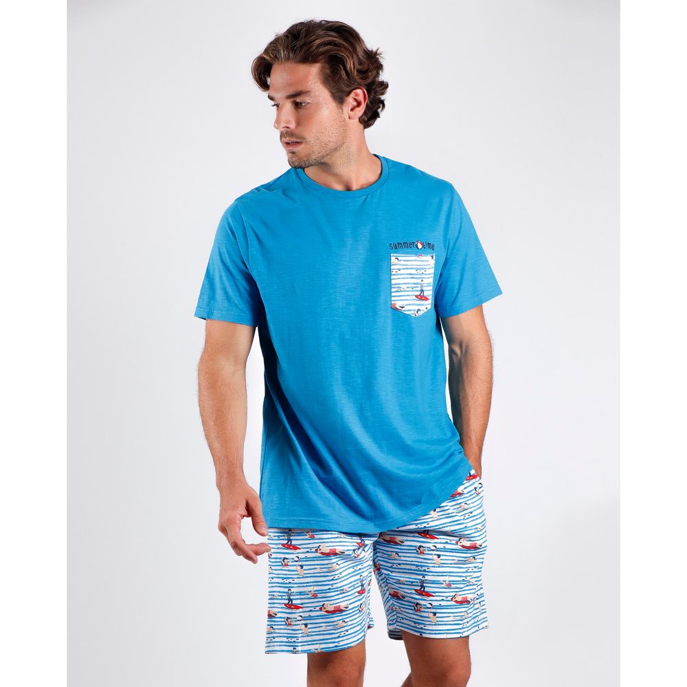 Diseño: Camiseta de mangas cortas con estampado masculino, acompañada de un pantalón a juego.