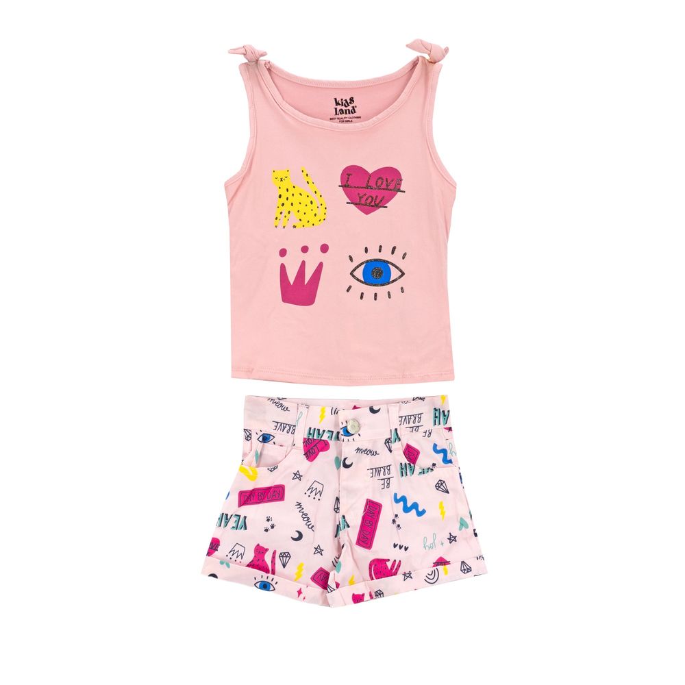 Conjunto Kids Land Mangas Cortas Estampado 2 Piezas P/ Niñas