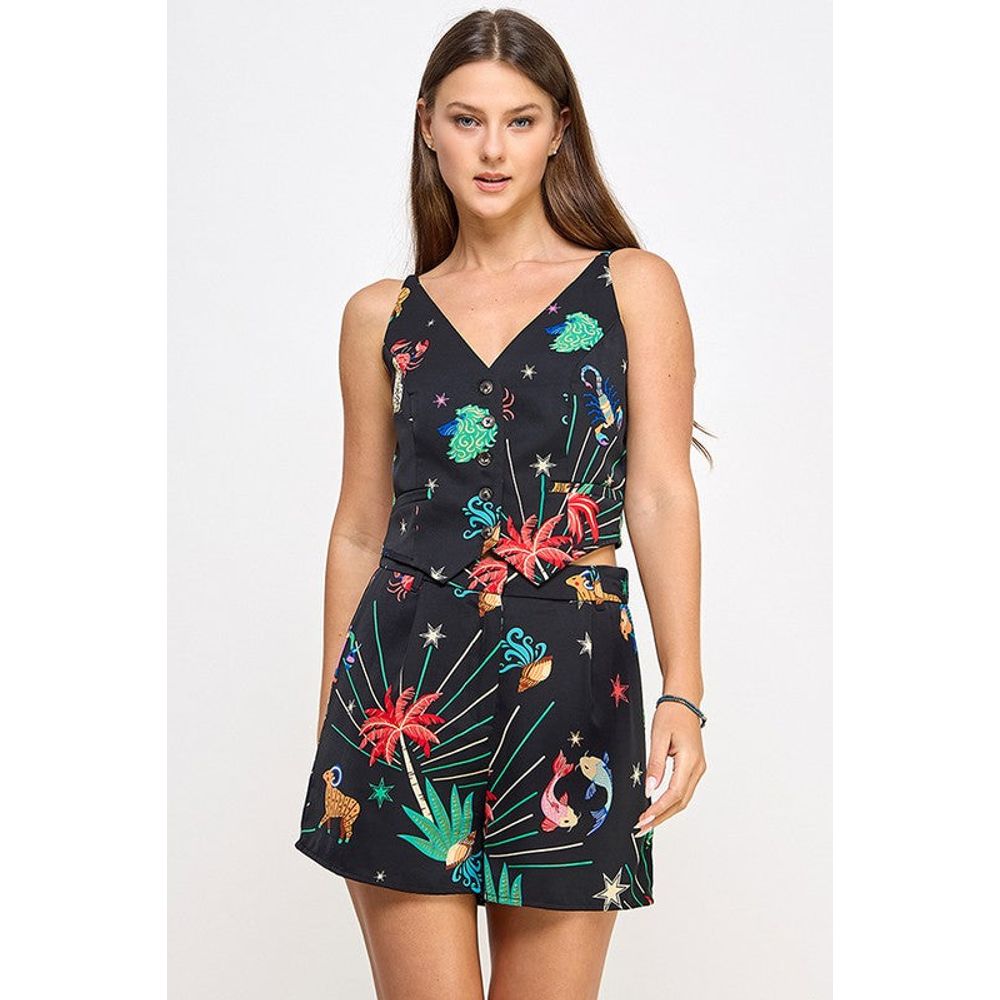 Enterizo Milk & Honey Mangas Cortas Estampado Con Cinturon P/ Damas