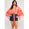 Tipo: Kimono de mangas largas con diseño estampado. Los kimonos son conocidos por su silueta relajada y su elegancia casual. El estampado (que puede ser floral, abstracto, geométrico, o un patrón distintivo de la marca) le da a esta prenda un carácter único y llamativo. Las mangas largas, a menudo amplias, ofrecen una cobertura ligera y un movimiento etéreo, perfecto para las brisas o para protección solar sutil.