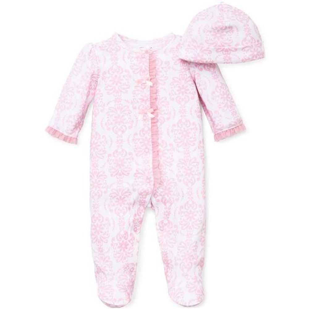 A tu bebé le encantará su footie con estampado de damasco perfecto para la siesta y el recreo. Los detalles del atuendo incluyen adornos de encaje y un lindo sombrero a juego.