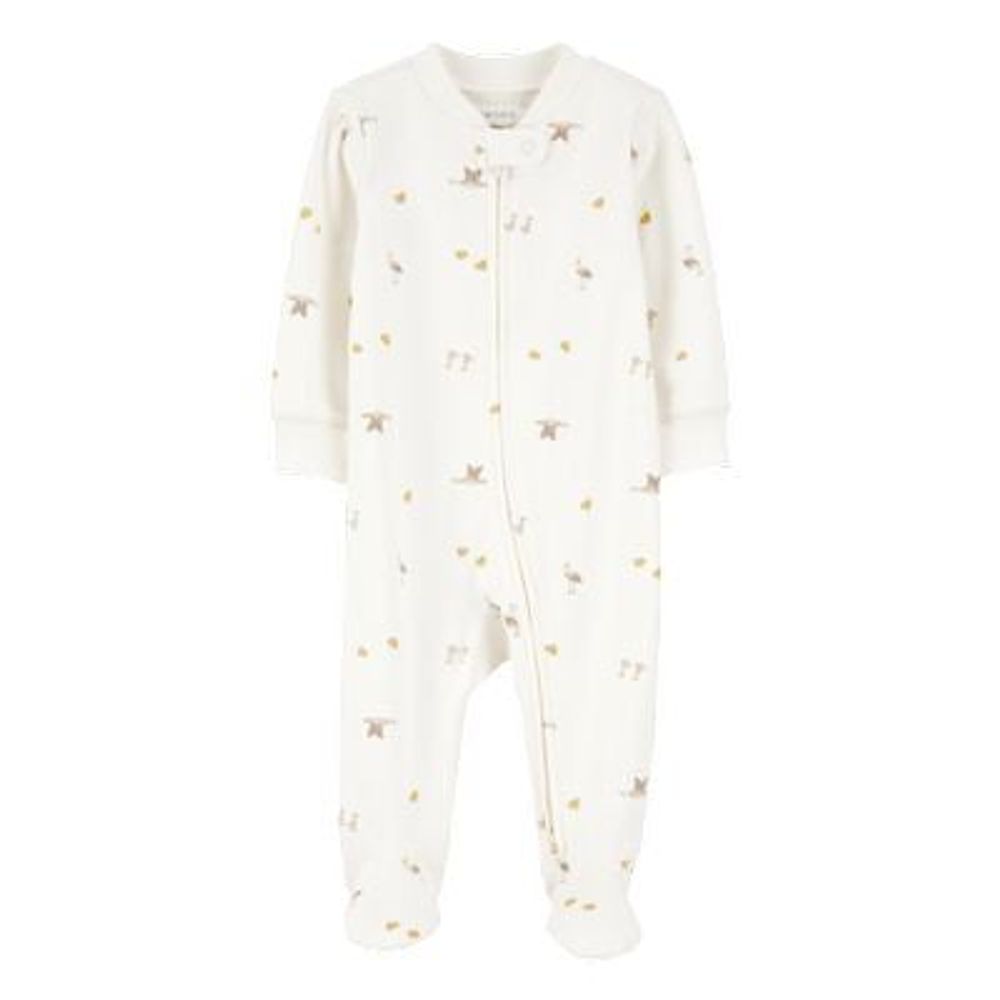 Pijama con Pies y Gorro Conejitos Blanco New Born