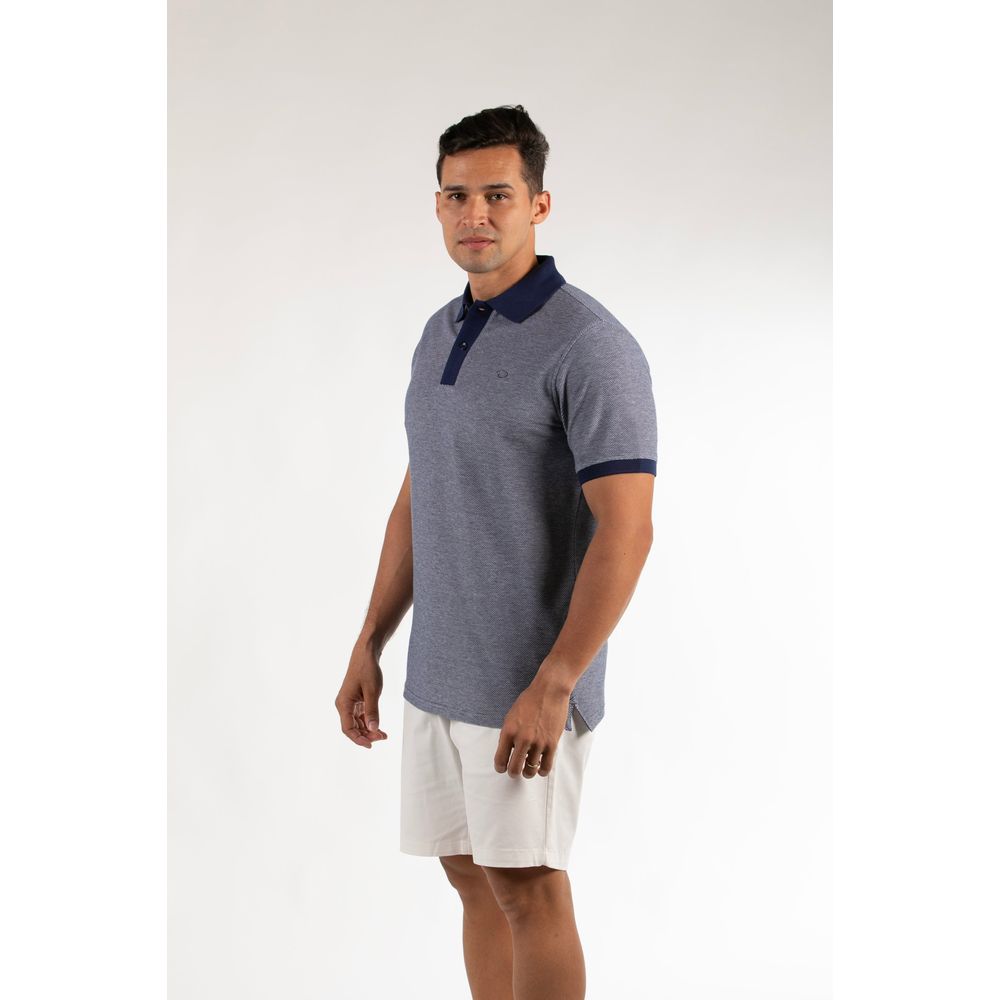 En un tono azul claro que aporta frescura y versatilidad, este polo combina un tejido texturizado tipo piqué con un cuello polo clásico y una tapeta de dos botones. Un bordado discreto en el pecho añade un detalle distintivo sin perder la sobriedad.