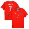 Short description | Portugal Home 2025 | Ronaldo #7¡Experimenta la fusión de tradición y ambición con la camiseta Portugal Home 2025 de PUMA! Honra el pasado brillante del equipo y prepara el escenario para un futuro incluso más brillante. Con los colores y diseños del escudo nacional portugués. ¡Portugal, tenemos orgullo en nuestra historia y la seguiremos creando! ¡Siente el orgullo del #7 Ronaldo!