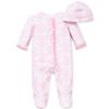 A tu bebé le encantará su footie con estampado de damasco perfecto para la siesta y el recreo. Los detalles del atuendo incluyen adornos de encaje y un lindo sombrero a juego.