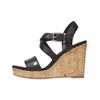 La plataforma eleva la silueta sin sacrificar comodidad, gracias a una base estable y una correa de tobillo que mantiene el ajuste seguro. El negro atemporal facilita combinar estas sandalias con vestidos, faldas, shorts o pantalones, creando looks veraniegos con un aire moderno. La textura de esparto y el detalle de la marca añaden un toque boho chic y sofisticado, ideal para quienes buscan un calzado versátil y con presencia.