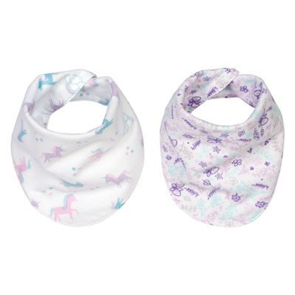 Alimentar nunca ha sido tan elegante con el juego de 2 baberos reversibles de franela con diseño de unicornios y flores de Trend Lab. Mantén los líos al mínimo con estos baberos de franela 100% algodón absorbentes y multiusos; perfecto para alimentar, babear o incluso como paño para eructar. Un babero presenta un estampado de arco iris de unicornio con un estampado de espiga en rosa pastel, aguamarina, púrpura y blanco; mientras que el otro presenta un mini estampado floral acentuado con corazones y estrellas en violeta, aguamarina y gris. Los baberos miden 11.5 x 11.5 pulgadas y tienen un cierre de doble botón en la parte posterior que les permite colgar como un adorable pañuelo en su pequeño.