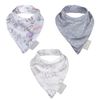 Alimentar nunca ha sido tan elegante con el Unicorn Dreamer 3-Pack 100% algodón peinado Jersey Baby Bandana Bib Set de Trend Lab. Mantén los líos al mínimo con estos baberos de bandana absorbentes; Perfecto para alimentar y babear. Cada babero del trío presenta un estampado diferente. Un estampado de unicornio feliz está en rosa claro, morado, amarillo, verde azulado y gris oscuro; un pequeño guión de soñador está en blanco sobre un fondo gris; y un estampado de nubes en gris pálido sobre un fondo blanco.