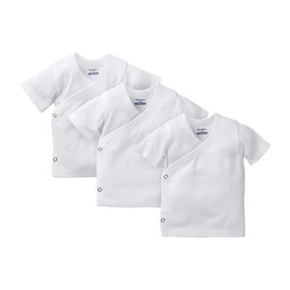 Este paquete de 3 camisetas es perfecto para bebés recién nacidos. La tela acanalada 100% algodón mantiene al bebé fresco y cómodo y la función de cierre lateral hace que cambiar al bebé sea muy fácil.