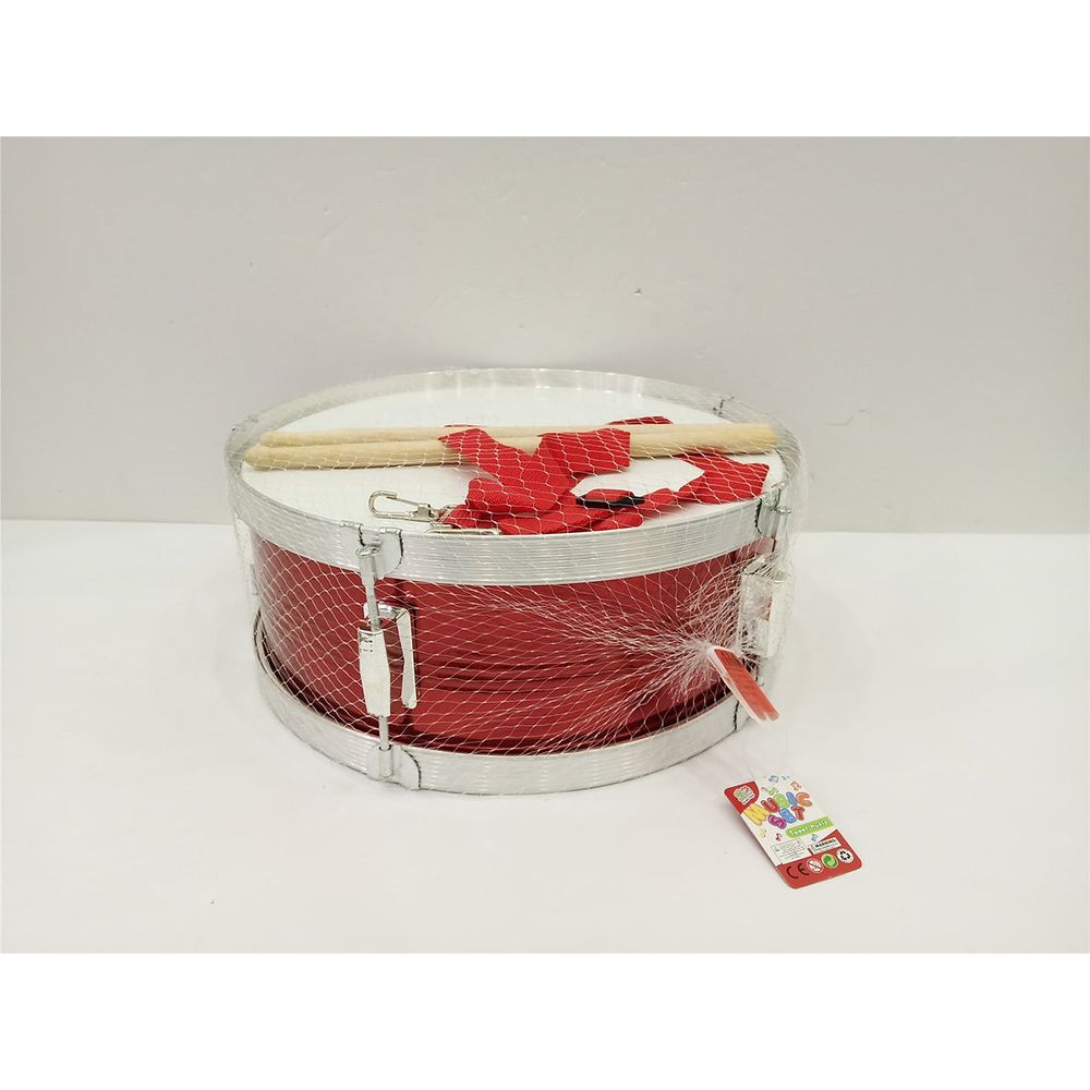 El juguete incluye: - un tambor con cuerpo de metal, - aros de aluminio, - una membrana de plástico, - un mango textil, - dos palos de madera - Dimensiones del tambor - 23 cm x 11 cm x 23 cm.