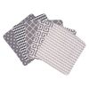 ¡El juego de paños de lavado Ombre Grey hace que la hora del baño sea divertida! El juego cuenta con cinco toallitas con divertidos estampados modernos o lisos en el frente y felpa en el reverso. Los patrones de las toallitas incluyen: uno con rayas de cheurón gris paloma y blanco; uno con estampado de clave griega en gris Paloma y blanco; uno con estampado de rombos en gris Paloma y blanco; uno con franja de cheurón gris y blanca a la hora de acostarse; y otro con lunares grises y blancos a la hora de acostarse. Mide 8 x 8 pulgadas.