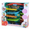 Al rodar por la pista de juguete, sus autos incluso podrán voltear hacia abajo las rampas inclinadas de arriba a abajo. Además, será interesante para el niño observar cómo caen pequeñas bolitas de colores en el embudo, superando también un nivel tras otro.