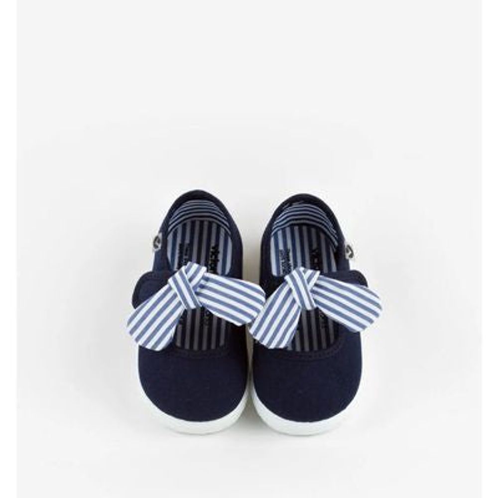 Zapatillas para niñafabricadas en España con algodón ecológico de alta calidad. Cierre mediantetira adherente y pañuelo de rayas extraíble que facilita el proceso de lavado,brindando practicidad y durabilidad. La forma de la zapatilla es más amplia porlo que asegura un calce cómodo. La suela vulcanizada es muy flexible yresistente.